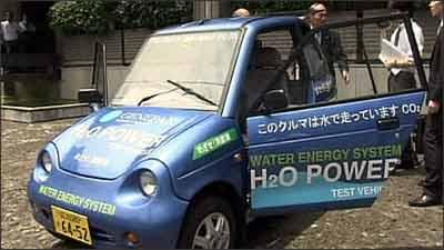 A empresa japonesa Genepax apresentou na quinta-feira um protótipo de um carro movido a água. A água é colocada no tanque e um gerador transforma o hidrogênio que retira da água em energia.
